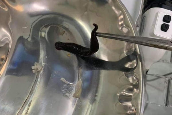 Con đỉa dài 10cm được các bác sĩ gắp ra khỏi bằng phương pháp nội soi.