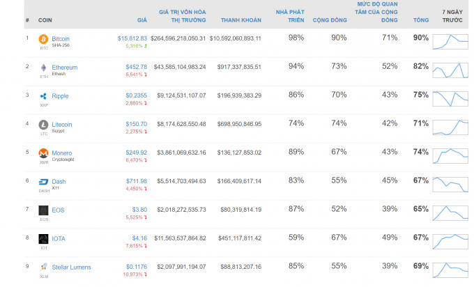 Đầu giờ sáng 11/12, Bitcoin đang được giao dịch ở mức 15.576 USD tăng 5,28% trong 24 giờ vừa qua. Số cung Bitcoin hiện tại đang là 16.733.050 tương ứng mức vốn hóa đạt 260 tỷ USD. So với đầu tuần trước, giá Bitcoin đã tăng 36%.