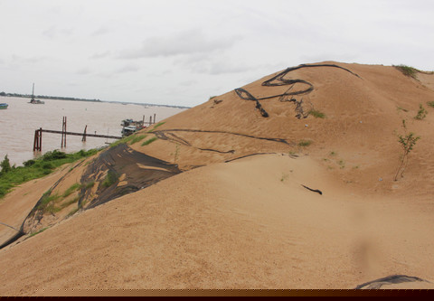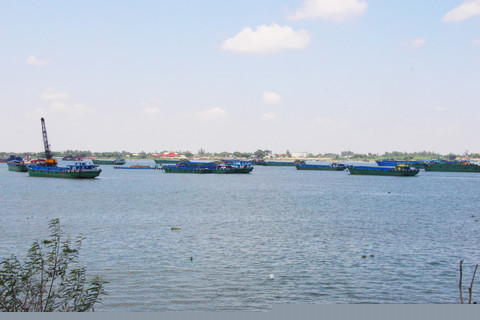 Những núi cát tập kết dọc sông Tiền giờ khó mà bắt gặp.