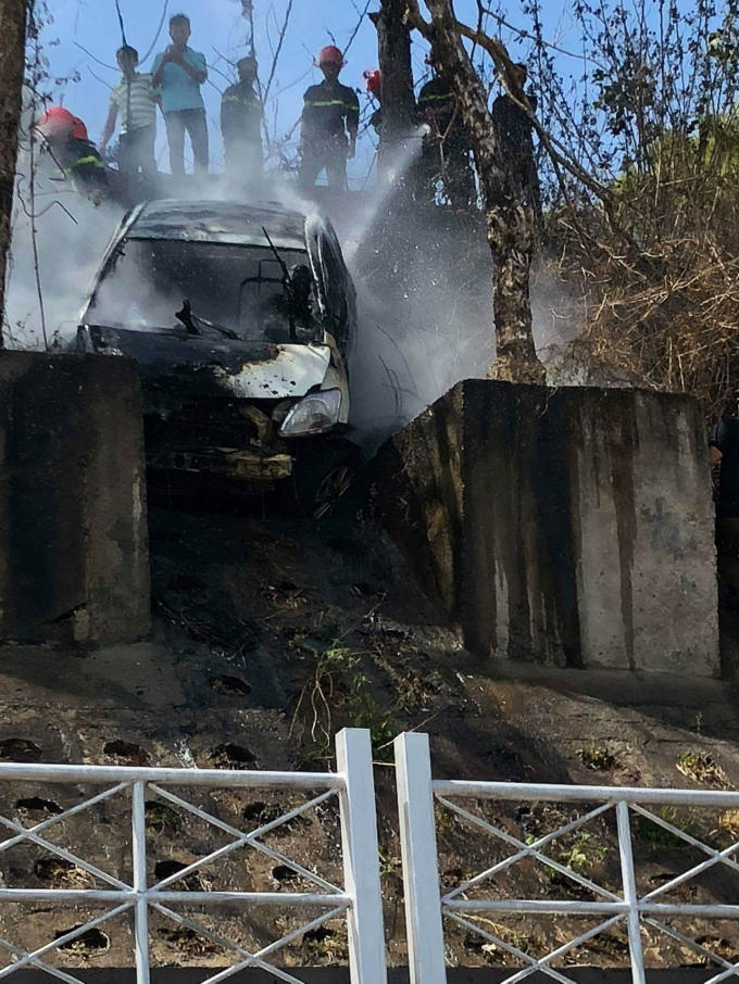 Qua kiểm tra hiện trường, thi thể của 2 nạn nhân trong chiếc xe ô tô bị thiêu cháy biến dạng. Xe ô tô bị thiêu rụi hoàn toàn, xe ô tô 4 chỗ được xác định của hãng Taxi Hùng Nhân.