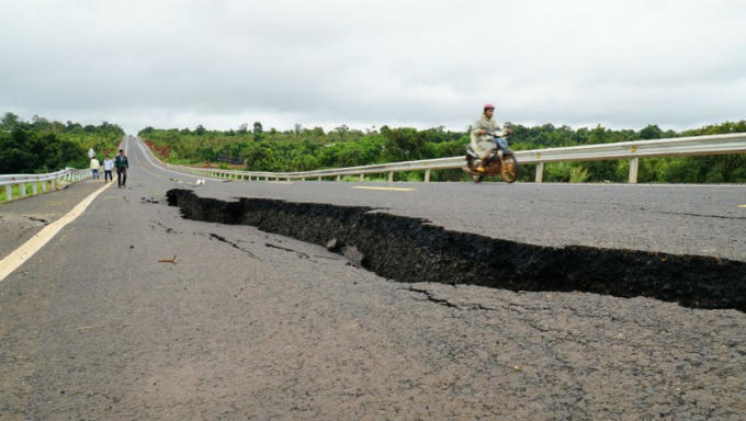 Vết nứt ngày càng loang rộng trên đoạn đường.