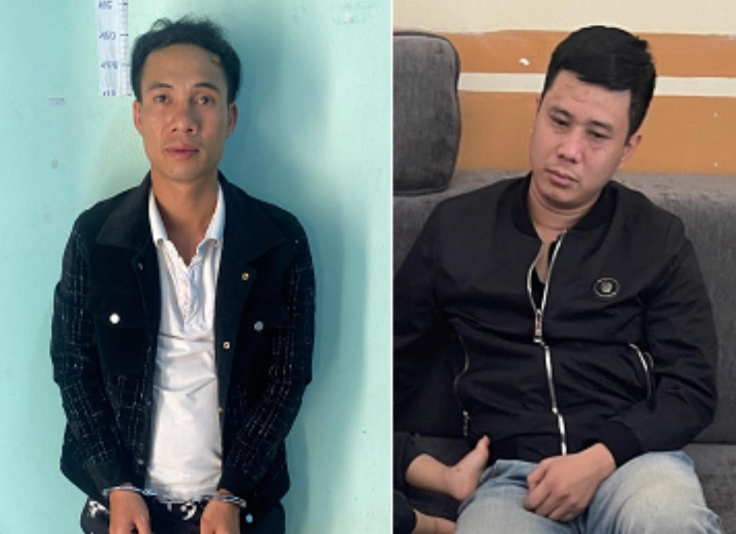 Huỳnh Quốc Dũng (bên trái) và Lương Tiến Dũng tại cơ quan CSĐT (Ảnh: Đình Nguyên)