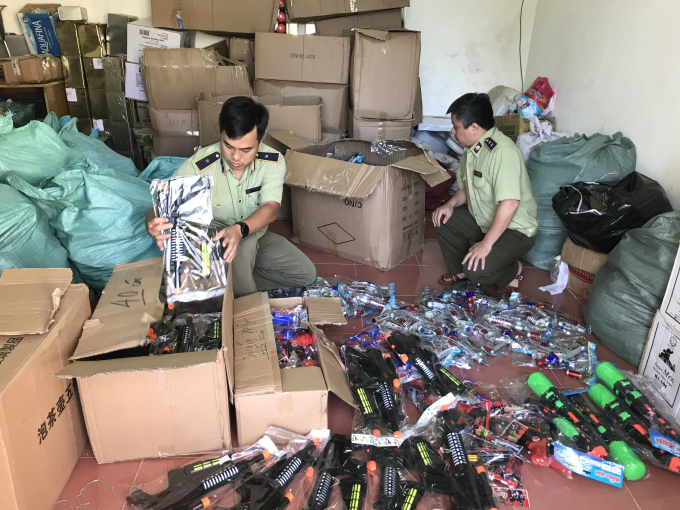 Lực lượng chức năng kiểm đếm số súng nhựa (Ảnh: Cục QLTT Gia Lai).