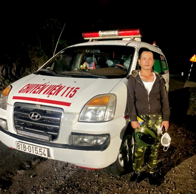 Tài xế Cường cùng xe cứu thương (Ảnh: Công an tỉnh Gia Lai).