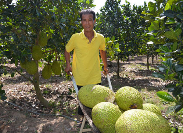 “Giá tăng cao, bán một quả mít Thái 20kg bán thu được 1 triệu đồng”, ông Long cho biết. Năm nay mít được giá nên ông mới chỉ bán một phần nhỏ mít trong vườn đã đút túi 50 triệu đồng.