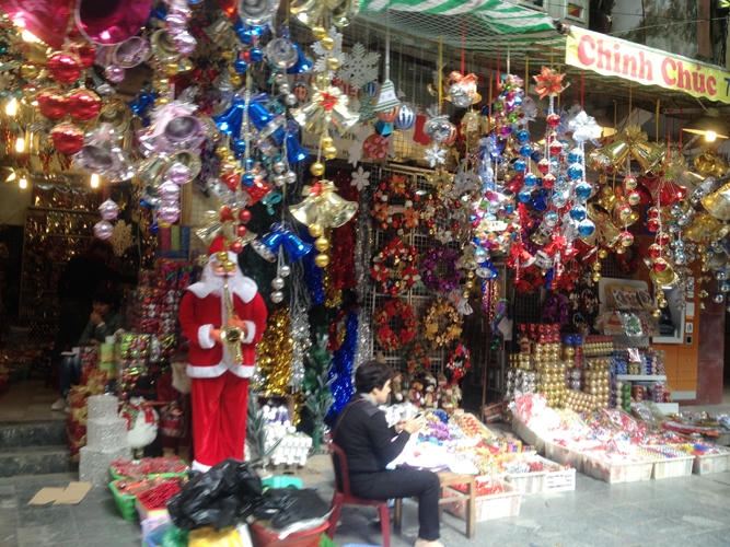 Còn gần nửa tháng mới đến Noel nhưng trên các cửa hàng, các con phố bán quà tặng, đồ trang trí ở Hà Nội đã nhộn nhịp khách đến mua hàng.