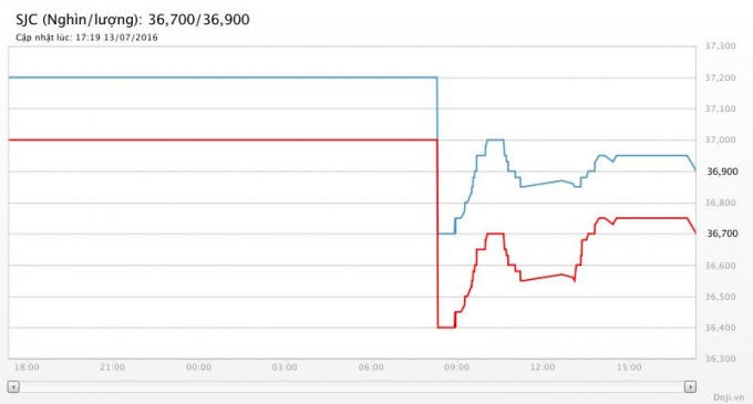 Biên độ giao dịch giữa mua và bán cũng được đẩy lên 300 nghìn đồng, tăng thêm 100 nghìn đồng so với phiên hôm qua.