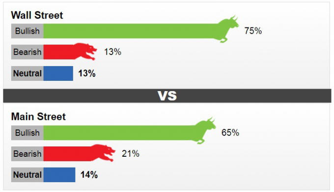 Trong khi đó, 910 người đã tham gia cuộc thăm dò trực tuyến tại phố Main. Đây là số người tham gia khảo sát trong tuần cao nhất trong hơn một năm nay. Tổng cộng có 599 người (65%) dự đoán xu hướng tích cực cho vàng, 187 người (21%) cho rằng vàng sẽ giảm và 124 người còn lại (14%) nhận định thị trường vàng sẽ không biến động.