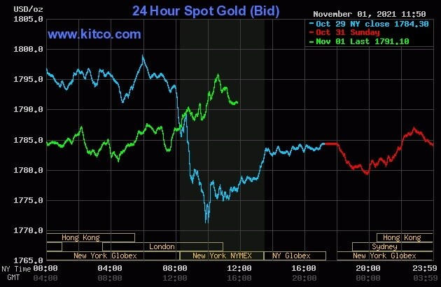 Trong khi đó, giá vàng thế giới giao ngay đứng quanh ngưỡng 1.792 USD/ounce. Vàng giao tháng 12 trên sàn Comex New York ở mức 1.793 USD/ounce.