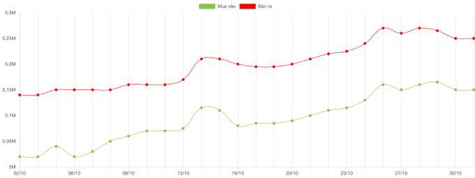 Biểu đồ giá vàng 30 ngày qua