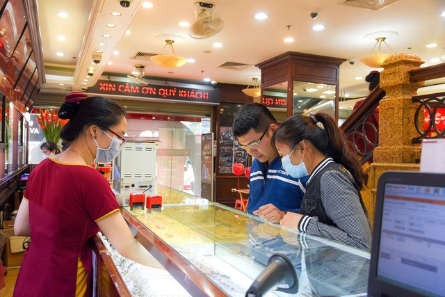 Cùng với xu hướng tăng cao trở lại, biên độ giá vàng mua vào - bán ra cũng được doanh nghiệp nới lên gần 3 triệu đồng/lượng.