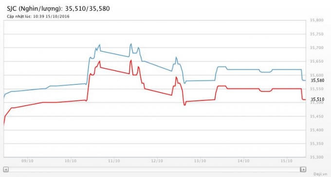 Cụ thể, cập nhật phiên giao dịch sáng ngày 16/10, lúc 7h30 tại thị trường TPHCM, giá vàng SJC giao dịch quanh mức 35,4 – 35,65 triệu đồng/lượng (chiều mua – bán).