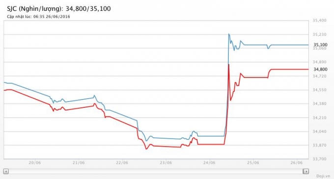 Giá vàng ngày 25/6: Tăng mạnh khi Anh "dứt tình" EU