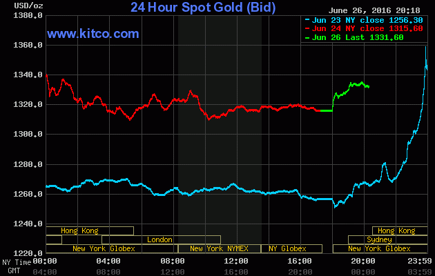 Thông tin mới nhất về giá vàng hôm nay 27/6, giá vàng thế giới tiếp tục duy trì mức cao sau 1 tuần đầy biến động trước thông tin Anh quyết định rời Liên minh Châu Âu (EU).