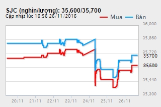 Kết thúc phiên giao dịch cuối tuần ngày 26/11, tại thị trường TPHCM, giá vàng SJC giao dịch quanh mức 35,51 – 35,71 triệu đồng/lượng (chiều mua – bán).