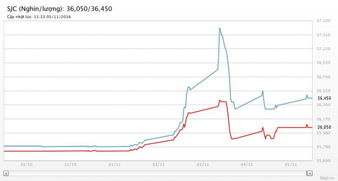 Mở cửa phiên giao dịch ngày 6/11, tại thị trường TP HCM, giá vàng SJC giao dịch quanh mức 36,05 – 36,55 triệu đồng/lượng (chiều mua – bán).