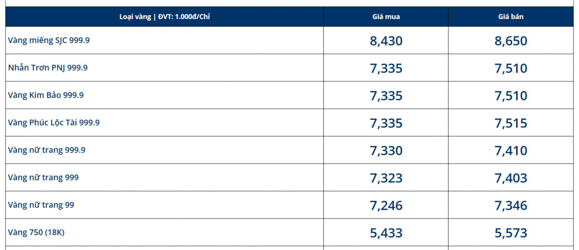 Tương tự, tại PNJ, giá vàng SJC cũng có chiều bán ra là 86,5 triệu đồng/lượng, trong khi giá mua vào thấp hơn khoảng 2 triệu đồng.