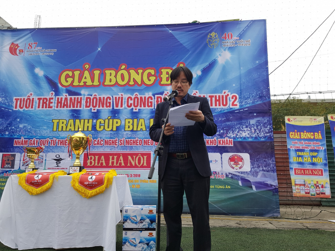 | Phó Giám đốc Nhà hát tuổi trẻ ông Nguyễn Sĩ Tiến phát biểu khai mạc giải đấu. |