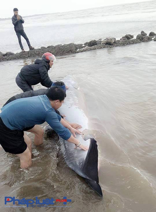 Sau khi kiểm tra thì thấy cá vẫn còn sống nhưng bị xây xát ở phần bụng, người dân đã cùng nhau tìm cách đưa con cá voi về biển và thông báo cho công an xã Bạch Long.