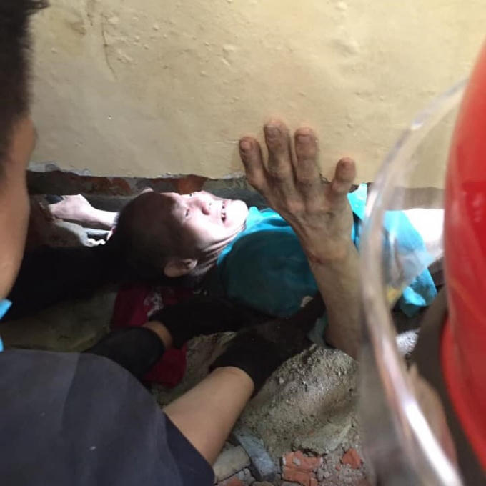 Lực lượng cứu hộ đã nhanh chóng sử dụng các phương tiện gồm máy cắt, máy đục bê tông, búa... phá dỡ một phần bức tường căn nhà số 43 đường Trần Phú; sau khoảng 30 phút nỗ lực triển khai các biện pháp nghiệp vụ, lực lượng đã đưa được nạn nhân ra ngoài an toàn.