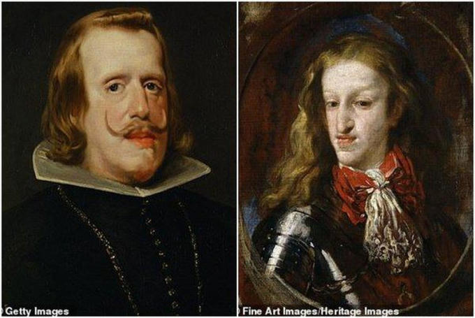Trong đó, ông Carlos II - vị vua Habsburg cuối cùng của Tây Ban Nha đã bị bệnh động kinh, có nhiều vấn đề về xương và trí thông minh. Bên cạnh đó, ông này còn có phần hàm dưới nhô ra quá nhiều so với hàm trên, nghiêm trọng tới mức gây cản trở cho việc nói và khó có thể ăn uống hay ngậm miệng.