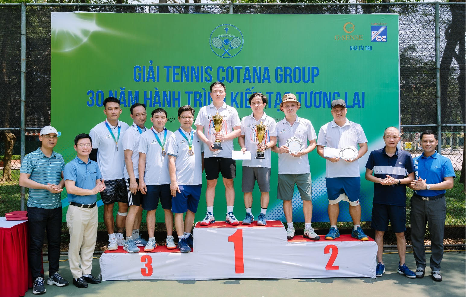 Sau một buổi sáng thi đấu sôi nổi, hào hứng dưới tiết trời nắng nóng của Thủ đô, giải tennis Cotana Group “30 năm - Dòng chảy kiến tạo tương lai” đã kết thúc thành công tốt đẹp với kết quả như sau: