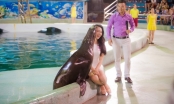 Thí sinh HHVN thích thú khi được sư tử biển hôn má