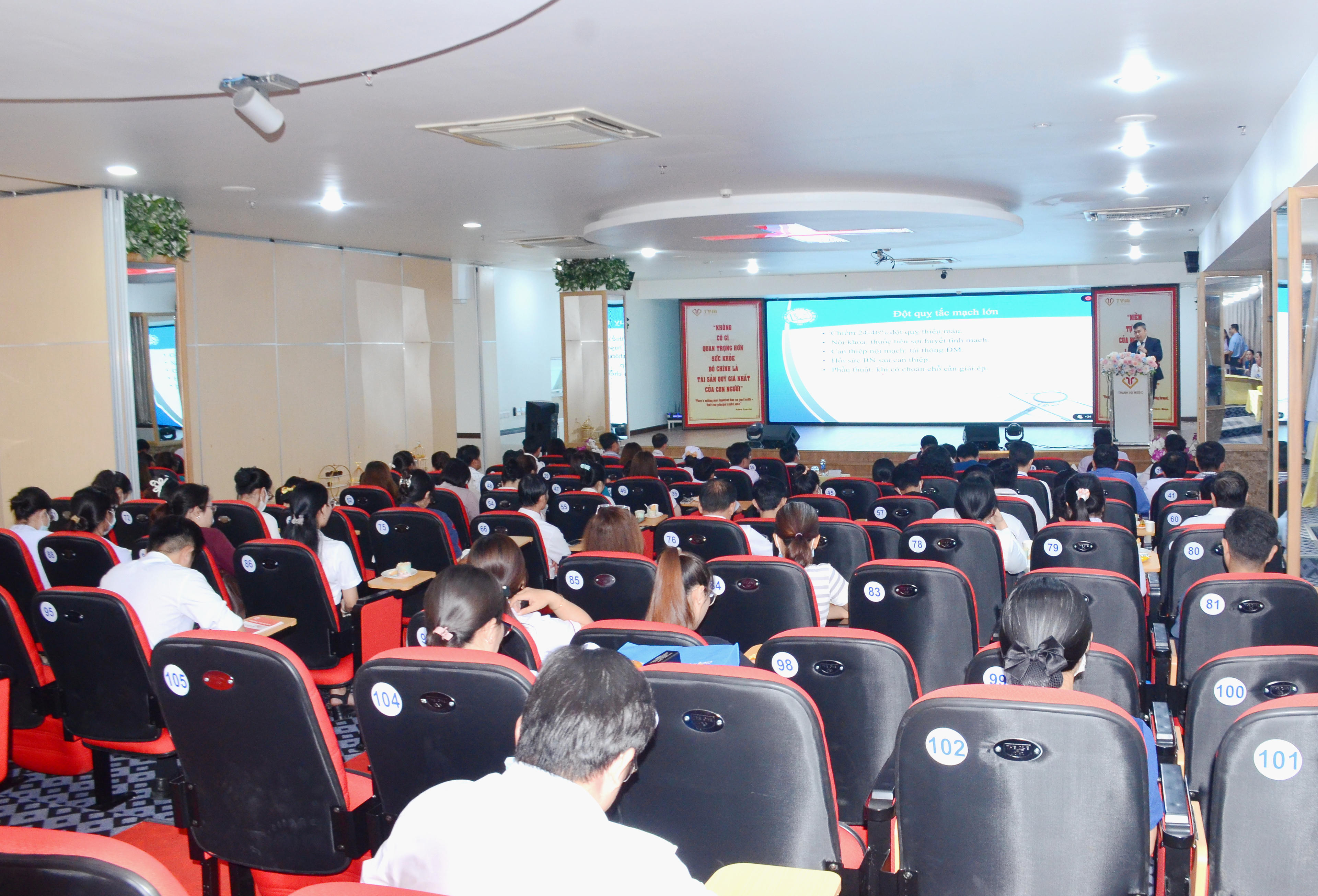 Trong khuôn khổ chương trình, BS.CKI Nguyễn Hoàng Duyên – Cố vấn chuyên môn Khoa Hồi sức cấp cứu, đã trình bày chuyên đề “Hành trình đơn vị Đột quỵ Bệnh viện Đa khoa Thanh Vũ Medic Bạc Liêu tiến đến tiêu chuẩn vàng”.
