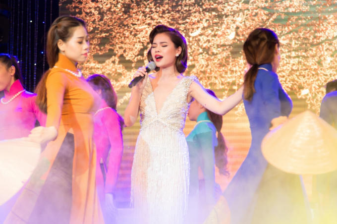 Quán quân X Factor xuất hiện đẹp kiêu kỳ như một quý cô với phong cách trang điểm cổ điển, cùng váy dạ hội trắng ôm sát kiêu sa trong một cuộc thi bolero tại TP Hồ Chí Minh.