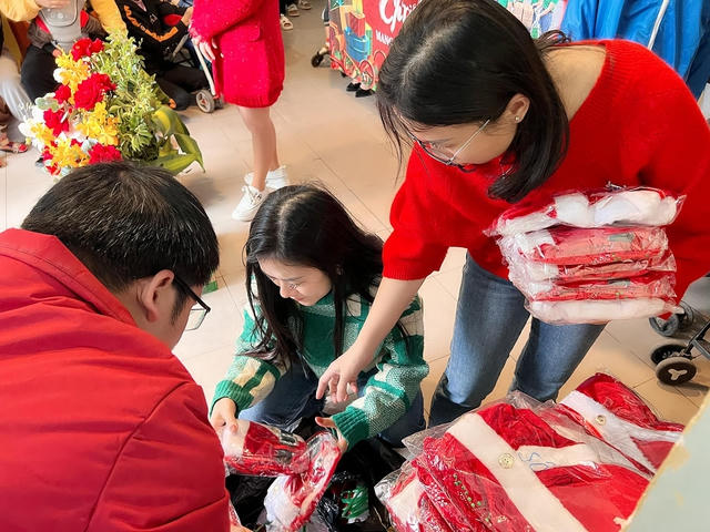 Mặc cho các em nhỏ bộ đồ Giáng sinh, chị Trần Thị Quỳnh Giang tâm sự: "Các em nhỏ bị bệnh đã thiệt thòi hơn bình thường. Có những em vì bệnh tật mà không được tự do chạy nhảy trên đôi chân của mình, không được thấy khung cảnh Giáng sinh lung linh huyền diệu ngoài kia… Từng chứng kiến nỗi đau, niềm mong mỏi của các em, tôi thật sự bị ám ảnh. Đến thăm trực tiếp các con như thế này, mới thấy bản thân mình còn quá may mắn, hạnh phúc".