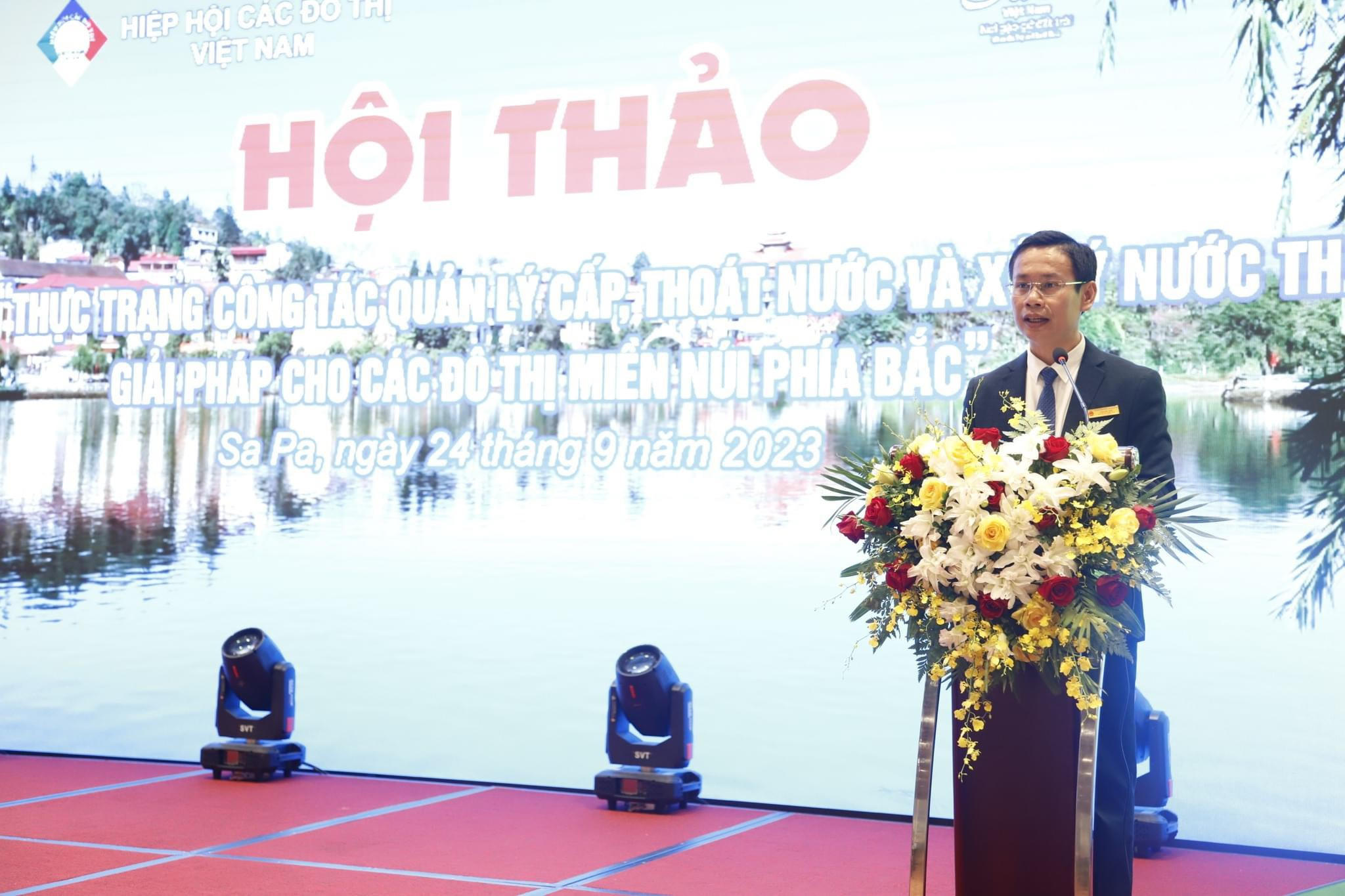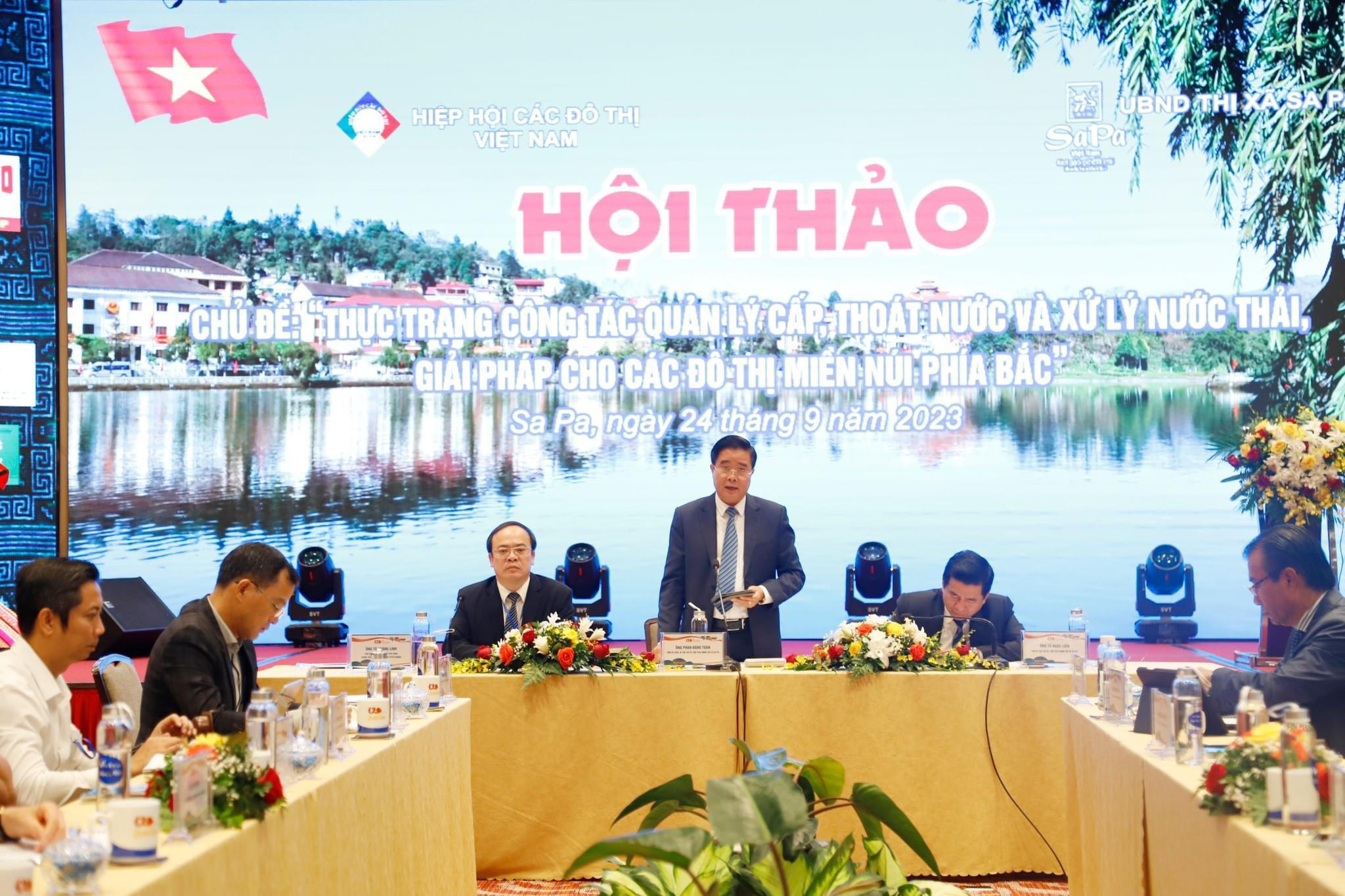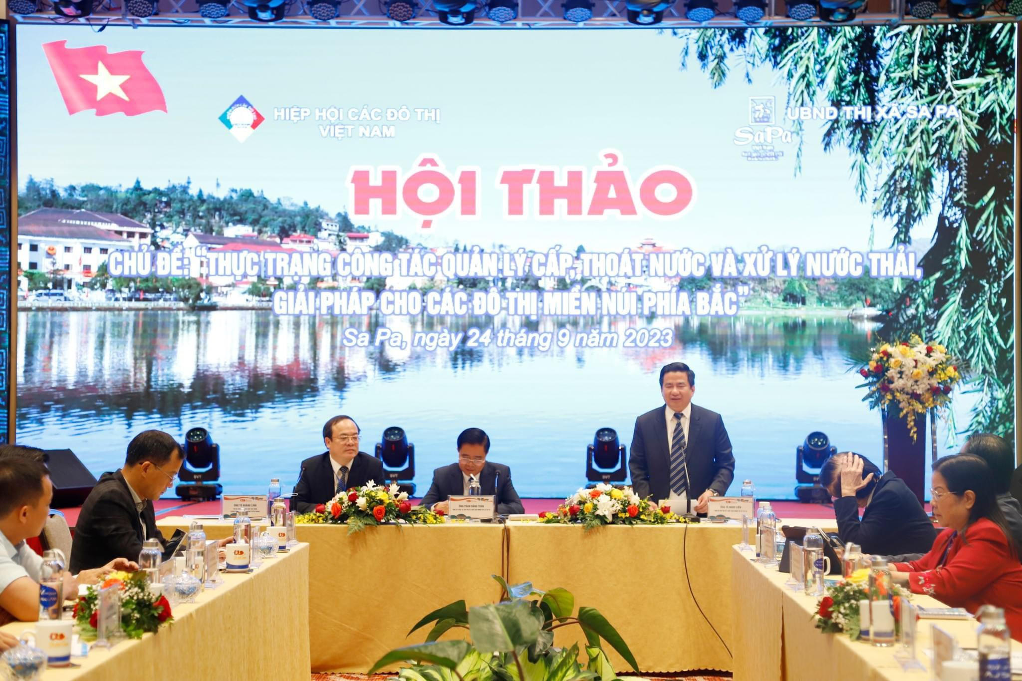 Trong khuân khổ hội nghị, các đại biểu đx tham gia hội thảo vối chủ đề" Thực trạng công tác quản lý câp, thoát nước và xử lý nước thải, giải pháp cho các đô thị miền núi phía Bắc".