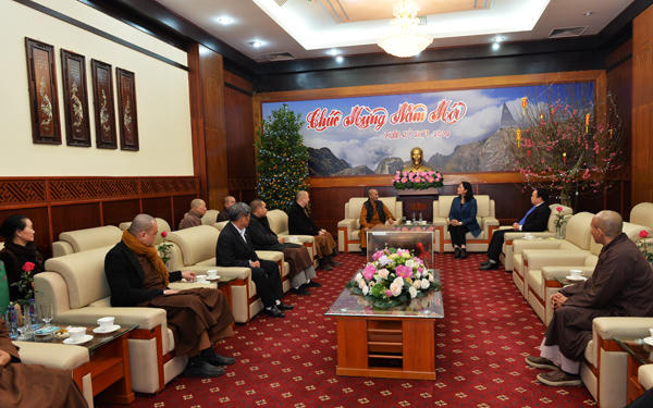 Tại các cuộc gặp thân mật, các vị lãnh đạo đã kính chúc chư Tôn giáo phẩm BTS GHPGVN tỉnh, Tăng Ni, Phật tử hưởng một mùa Xuân an lành và thực hiện thành tựu nhiều công tác Phật sự trong năm 2019.