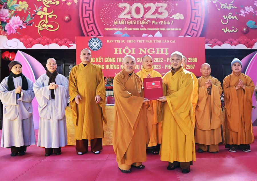 Trước đó, sáng 09/1, tại chùa Tân Bảo - Thường trực BTS GHPGVN tỉnh Lào Cai đã long trọng tổ chức Hội nghị tổng kết công tác Phật sự năm 2022 và triển khai phương hướng hoạt động trong năm mới 2023.