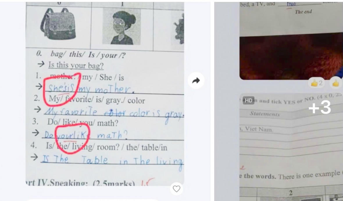 Việc sửa bài được cho là thực hiện bằng cách thêm nét vào chữ cái, thêm từ vào câu trả lời, làm thay đổi kết quả từ đúng thành sai.