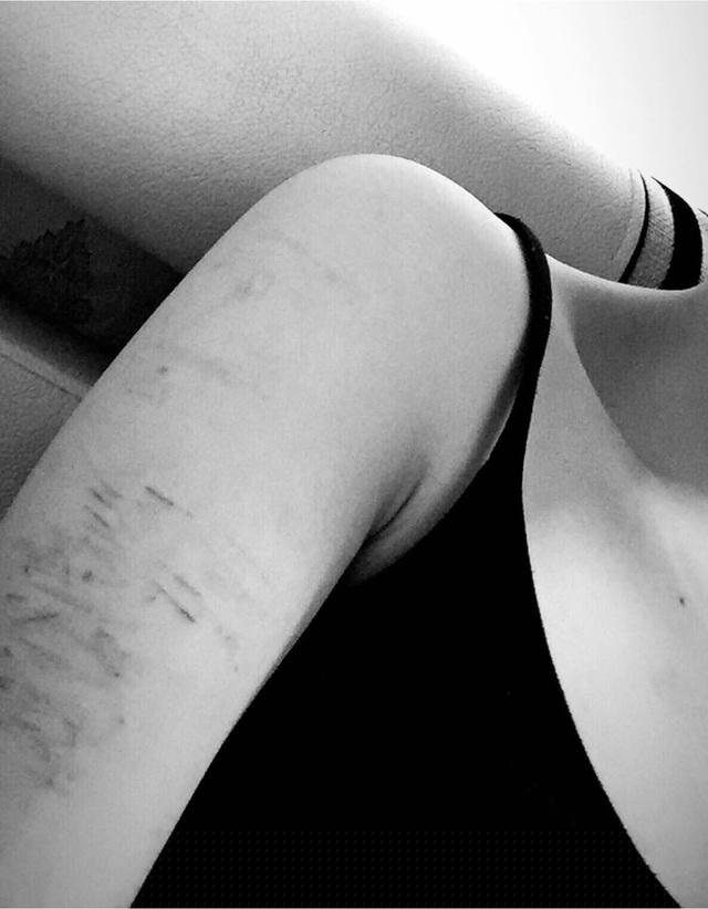 Đi kèm đó là hình ảnh cánh tay X. từ trên xuống giới chi chít những vết rạch mới tứa máu bên cạnh nhiều đường rạch cũ đã mờ sẹo.