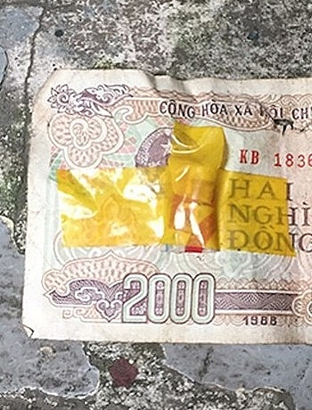 Kiểm tra kỹ chiếc ví của người này, tổ công tác phát hiện 1 gói ma túy dán vào tờ tiền mệnh giá 2000 đồng rồi gấp lại để ngay ngắn tron ví. Lúc này, biết không thể thoát, người đàn ông mới chịu thừa nhận để qua mắt lực lượng Công an nên giấu ma túy vào tờ tiền thì sẽ không bị kiểm tra.