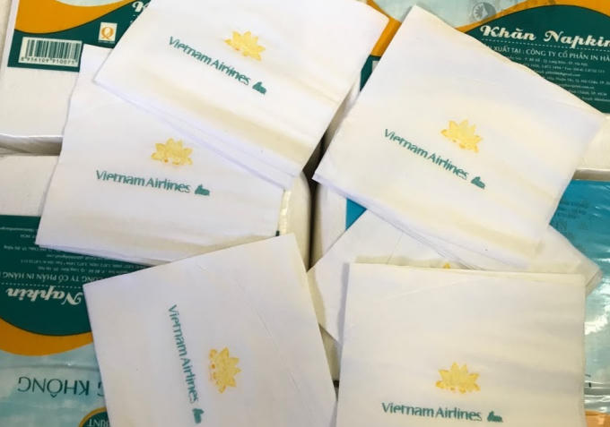 Giấy ăn nhãn hiệu Việt Nam Airline nghi bị làm giả
