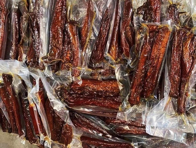 "Quê tôi ở Sơn La, nơi có món thịt trâu gác bếp nổi tiếng. Thế nên, tháng nào, tôi cũng nhập hàng từ quê mang xuống Thủ đô bán kiếm lời. Chỉ riêng mùa Tết năm ngoái, tôi phải bán được 150 kg - 200 kg" - chị kể.