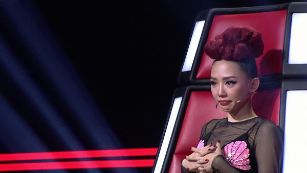 HLV Tóc Tiên cũng rưng rưng nước mắt trước những lời chia sẻ của HLV Thu Minh, giọng ca Ngày mai còn tha thiết mong muốn anh chàng sẽ góp mặt vào đội hình tươi trẻ của mình.