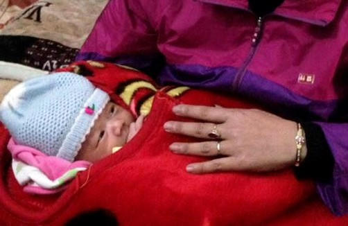Một bé trai mới hơn 1 tháng tuổi bị bỏ trong chiếc giỏ nhựa rồi để trước cửa nhà một người dân trong thời tiết lạnh giá.