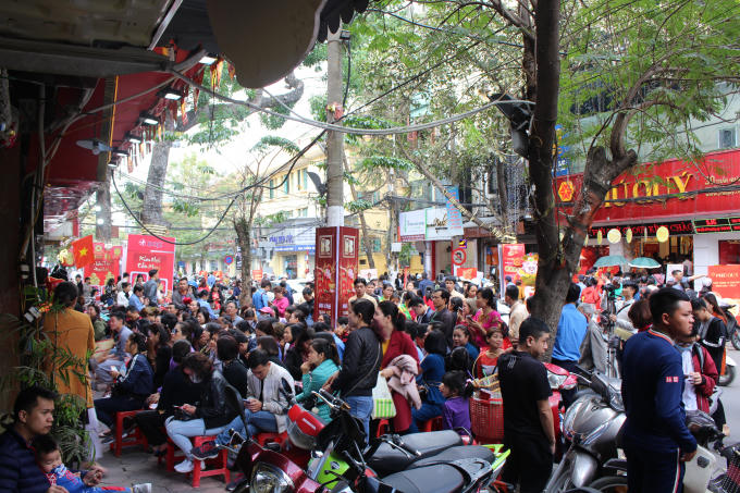 "Năm nay ngày vía Thần Tài trùng với ngày lễ Tình nhân 14/2 nên lượng người mua vàng tăng mạnh. “Bắt đầu từ ngày mùng 8 và mùng 9 tháng Giêng âm lịch, lượng khách kéo tới các chi nhánh của DOJI tăng gấp 5 - 7 lần ngày thường. Điển hình như hôm qua, khách mua vàng từ đến 22 giờ 30 mới kết thúc”. - Bà Hiền cho biết thêm.