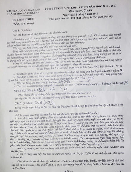 Dưới đây là gợi ý đáp án đề thi Ngữ văn lớp 10 tại TP HCM: