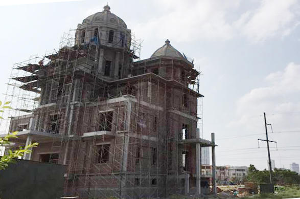 Tuy nhiên, có thể thấy việc ban hành quyết định đình chỉ của UBND phường Phú Lương cũng chỉ như “trò đùa”, bởi từ ngày ban hành Quyết định đến nay, công trình vẫn “ngang nhiên” xây dựng và hoàn thiện. Theo quan sát của phóng viên, hiện căn biệt thự này đã xây xong phần thô, với chiều cao 5 tầng rưỡi. Kiến trúc căn biệt thự được thiết kế nguy nga với hệ thống mái vòm thiết kế theo kiểu Châu Âu, đến thời điểm này, hàng chục công nhân vẫn đang gấp rút thi công, trát tường mặt trong và ngoài căn nhà.