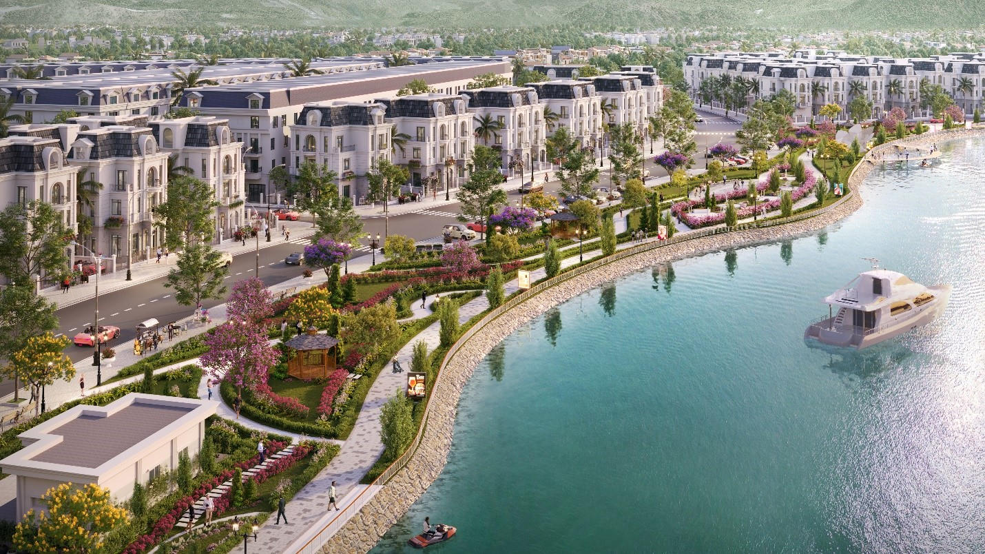 Một góc phối cảnh dự án TNR Grand Palace Hà Giang với view hồ trung tâm.