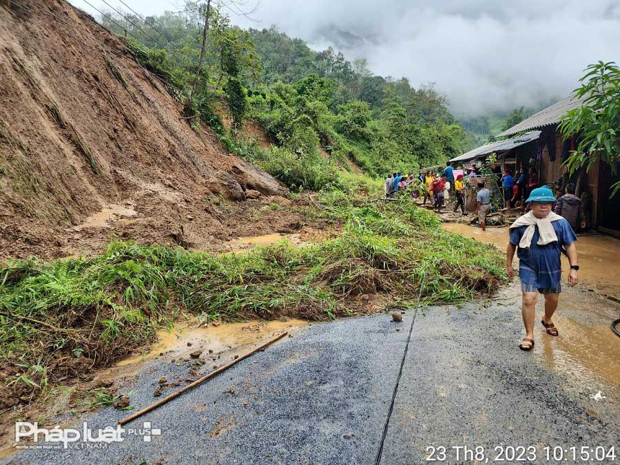 Từ ngày 21-23/8/2023, trên địa bàn tỉnh Hà Giang diễn ra các đợt mưa lớn làm xói lở nền mặt đường, công trình trên các tuyến đường gây ách tắc cục bộ.