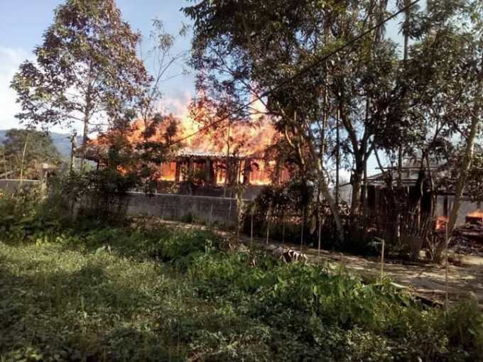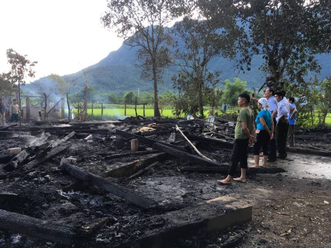 Còn gia đình ông Vương Văn Huấn cũng bị lửa thiêu rụi nhà sàn 3 gian 2 trái, 1 bếp, 1 chuồng lợn 2 gian. Tài sản trong nhà ông Huấn bị cháy gồm: Ti vi, tủ, chăn màn, máy ấp trứng…Ước tính thiệt hại khoảng 400 triệu đồng.
