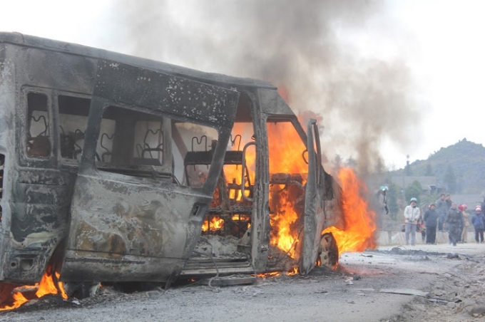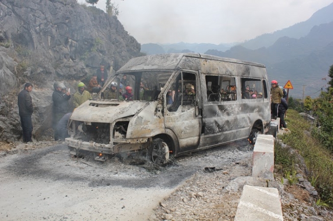 Sự việc xảy ra vào khoảng 13h 40 ngày 25/1, chiếc ô tô 16 chỗ do anh Nguyễn Văn Bình có hộ khẩu thường trú tại Hà Nội điều khiển đang lưu thông trên tỉnh lộ 176 từ huyện Mèo Vạc đi Yên Minh, đến địa phận thôn Há Xúa xã Tả Lủng (Mèo Vạc – Hà Giang) thì đầu chiếc xe bất ngờ bốc cháy.