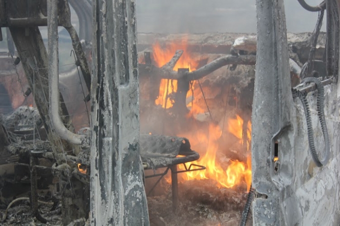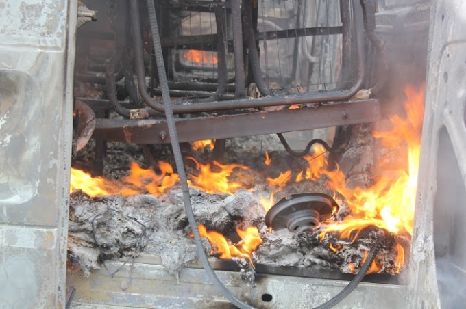 | Ngọn lửa bốc cháy dữ dội bên trong xe khiến cho công tác cứu hỏa gặp nhiều khó khăn. |