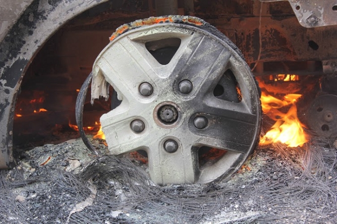| Lốp xe cũng bị cháy trơ vành và hư hại nặng. |