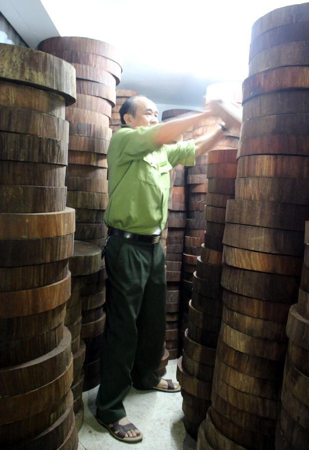 Quá trình khám xét trong tầng hầm nhà ở của ông Vũ Mạnh Hoạch (chủ cơ sở), lực cơ quan chức năng phát hiện tổng cộng 1.174 khúc gỗ nghiến dạng thớt được dấu kỹ. Tổng khối lượng loại này là 13,69m3.